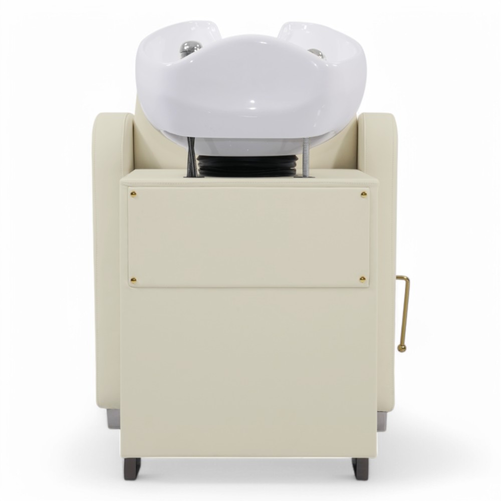 Il lavatesta ELITE.YC è la soluzione ideale per i saloni di parrucchieri che cercano un design elegante e funzionale. La similpelle bianca resistente si abbina a un'imbottitura confortevole, garantendo un supporto ottimale per la testa e il collo dei clienti. Il bacino profondo è progettato per evitare schizzi, assicurando un'esperienza di lavaggio rilassante. La struttura robusta garantisce durabilità nel tempo, mentre l'estetica moderna, con le finiture oro, si integra perfettamente in ogni salone. Alza gambe manuale.