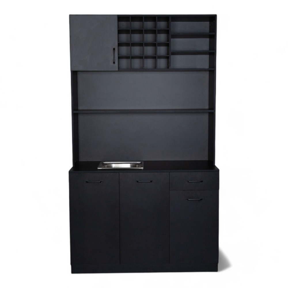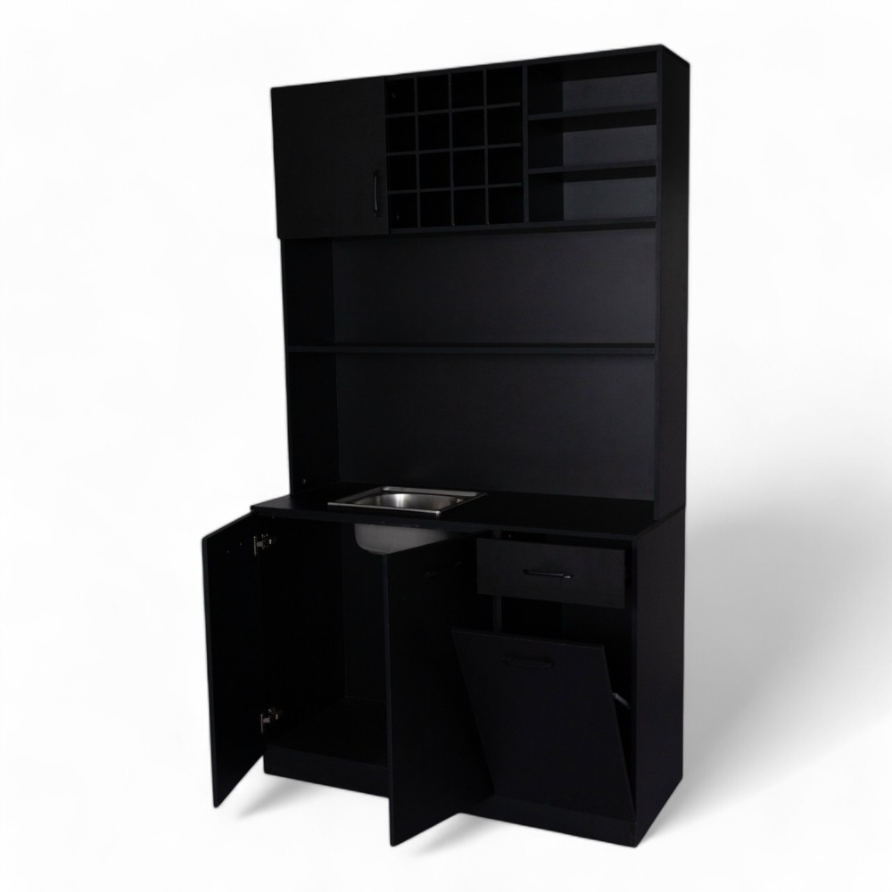 Il mobile retrolavaggio LABOR.FN, in elegante nero con lavandino integrato, è progettato per offrire funzionalità e stile nelle postazioni di lavaggio. Realizzato con materiali resistenti, offre ampi spazi di stoccaggio per i prodotti, rendendo l'organizzazione più semplice e professionale. La finitura nera lo rende versatile e adatto a qualsiasi salone moderno.