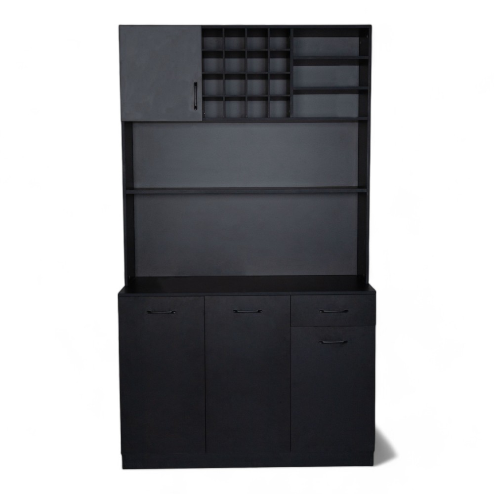 Questa versione del mobile LABOR.FN, priva di lavandino, è ideale per chi cerca uno spazio di archiviazione pratico e funzionale nelle postazioni di lavaggio. Realizzato in nero resistente, offre uno spazio ampio e ben organizzato per prodotti e strumenti. Il design moderno si adatta perfettamente agli ambienti di lavoro professionali.