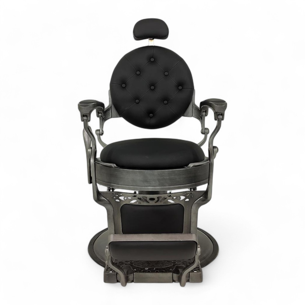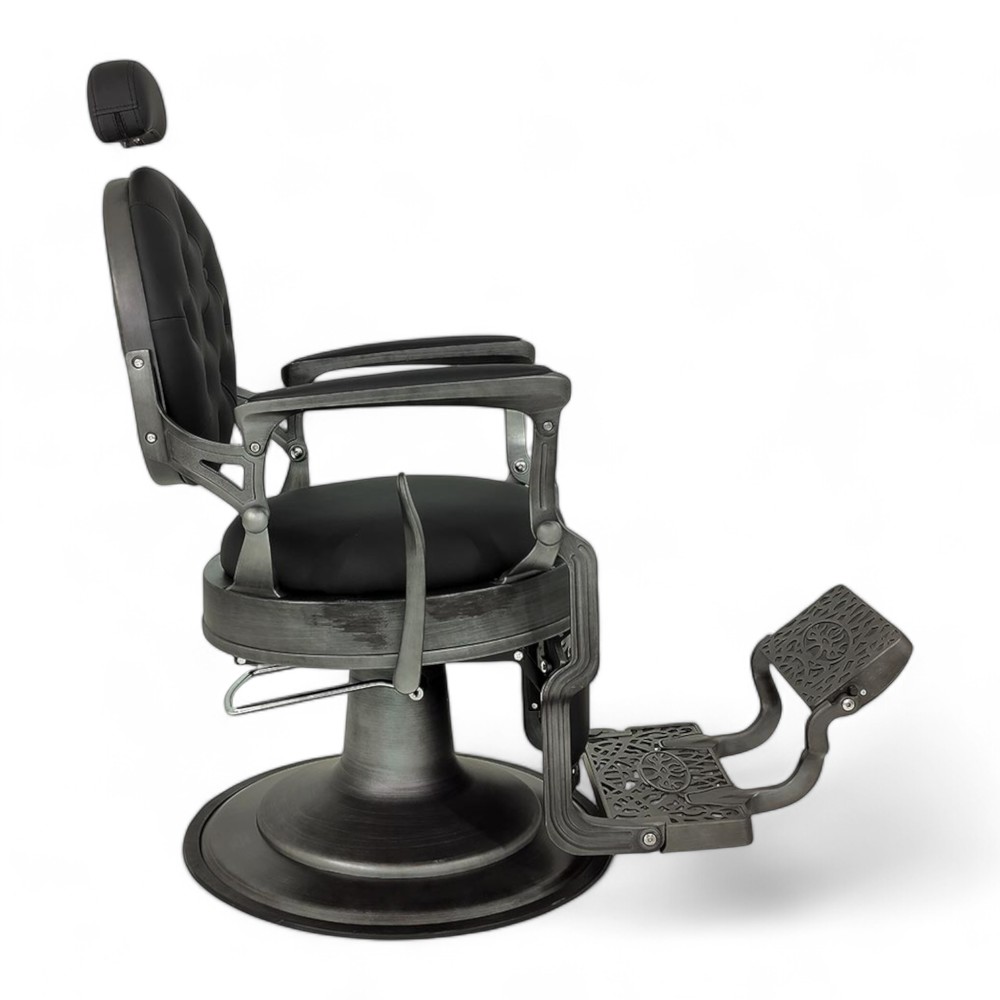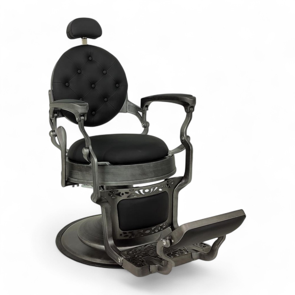 Questa versione della poltrona BRUSH.HL con scocca in grigio spazzolato e rivestimento in similpelle nera, è progettata per offrire una seduta ergonomica e confortevole. Perfetta per saloni di barbiere moderni, la sua struttura solida e il design funzionale garantiscono resistenza e comfort a lungo termine