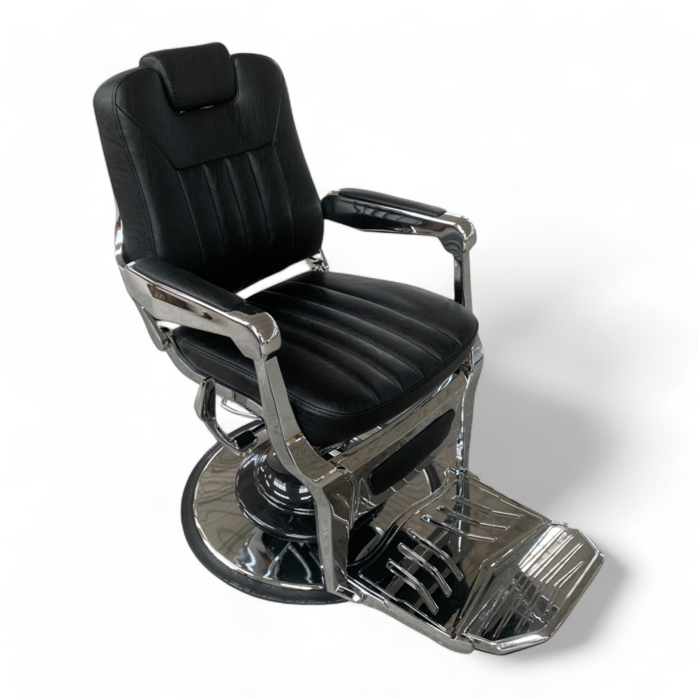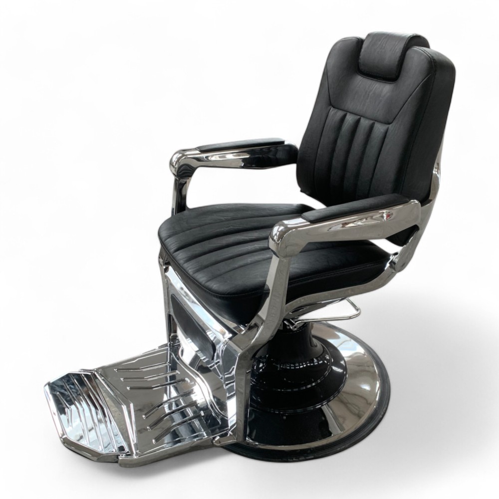 La poltrona IRON.YL, con la sua scocca in argento e rivestimento in similpelle nera con striature, è progettata per fornire un’esperienza confortevole e rilassante ai clienti. Il design robusto e i materiali di alta qualità garantiscono durabilità e resistenza, perfetta per saloni di barbiere che desiderano un arredo funzionale e moderno.
