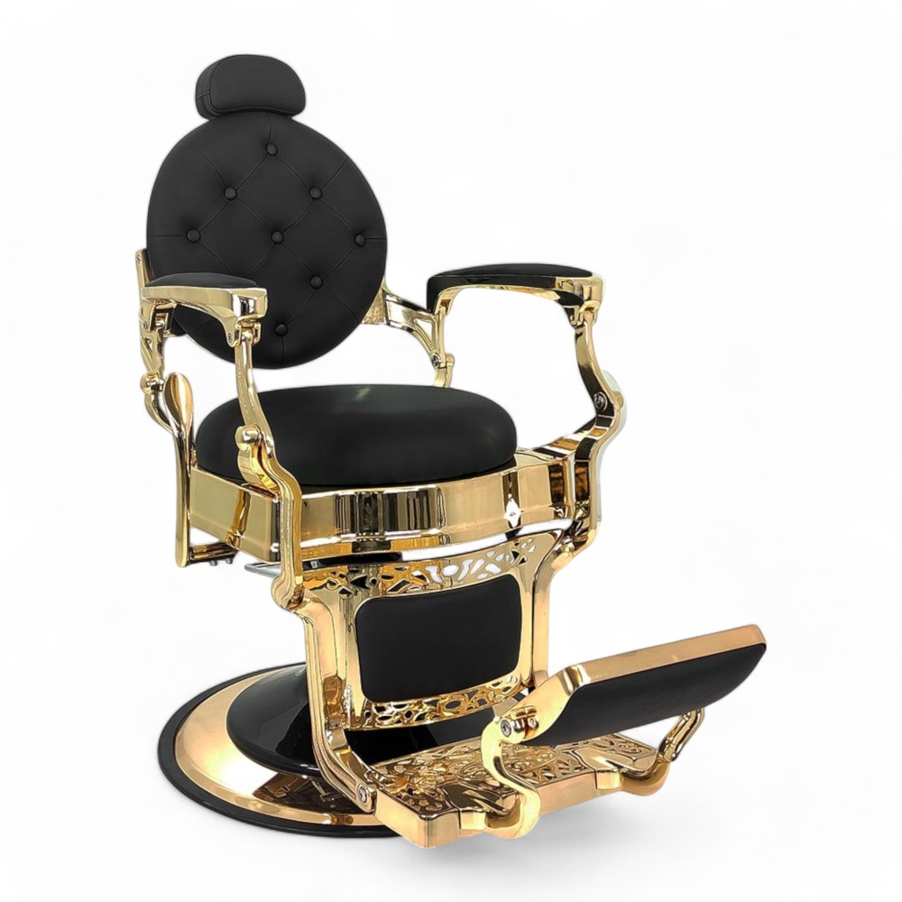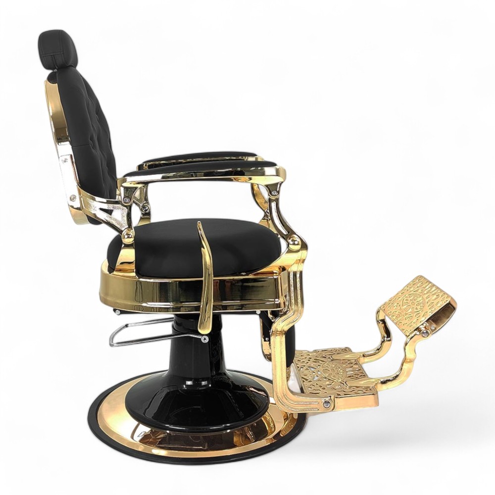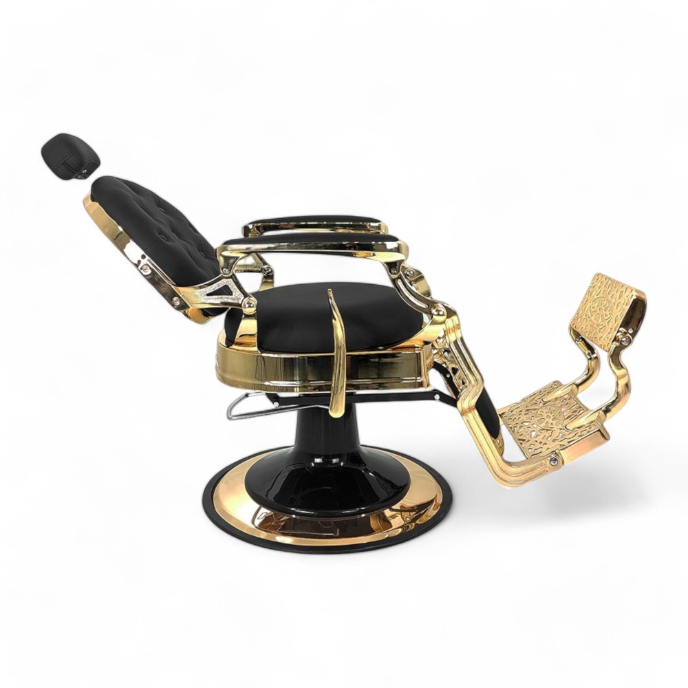 La poltrona REGINA.HL con scocca dorata e rivestimento in similpelle nera è pensata per saloni di barbiere di lusso. La sua struttura dorata dona un tocco di eleganza e prestigio, mentre la seduta ergonomica e resistente garantisce il massimo comfort e durabilità. Perfetta per chi desidera un arredamento esclusivo.