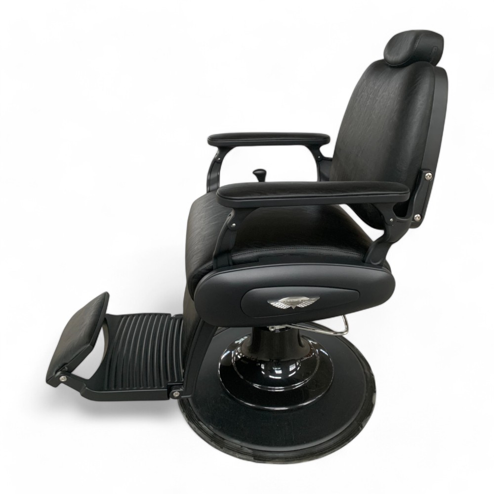 La poltrona da barbiere SPIDER.YL, con scocca nero opaco e rivestimento in similpelle nera con striature, è progettata per offrire un'esperienza confortevole e moderna ai clienti. Il design ergonomico e robusto garantisce resistenza e durata nel tempo, ideale per saloni che puntano su funzionalità e stile contemporaneo.
