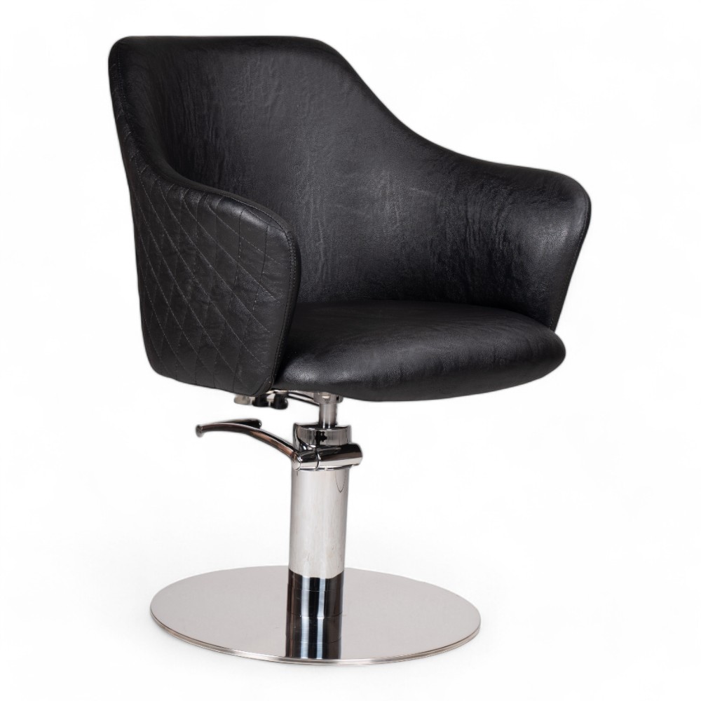 La poltrona GAMMA.YL in similpelle nera è progettata per offrire un’esperienza confortevole ai clienti grazie alla sua pompa idraulica regolabile. Il design elegante e la struttura robusta la rendono una scelta ideale per saloni che puntano su praticità e stile.