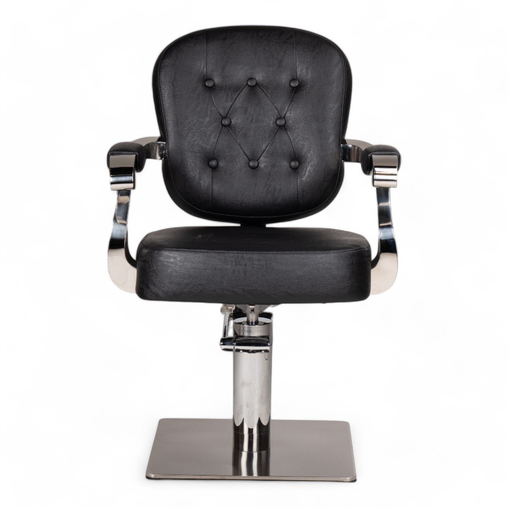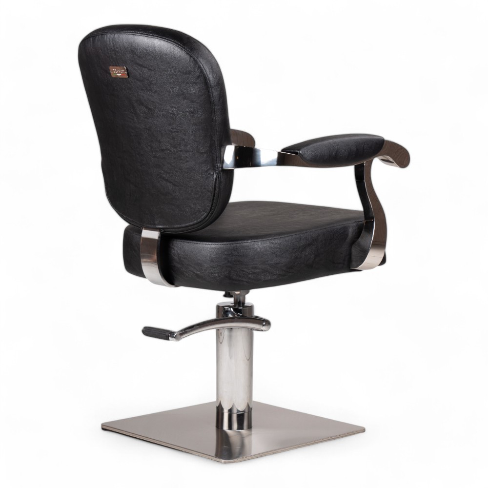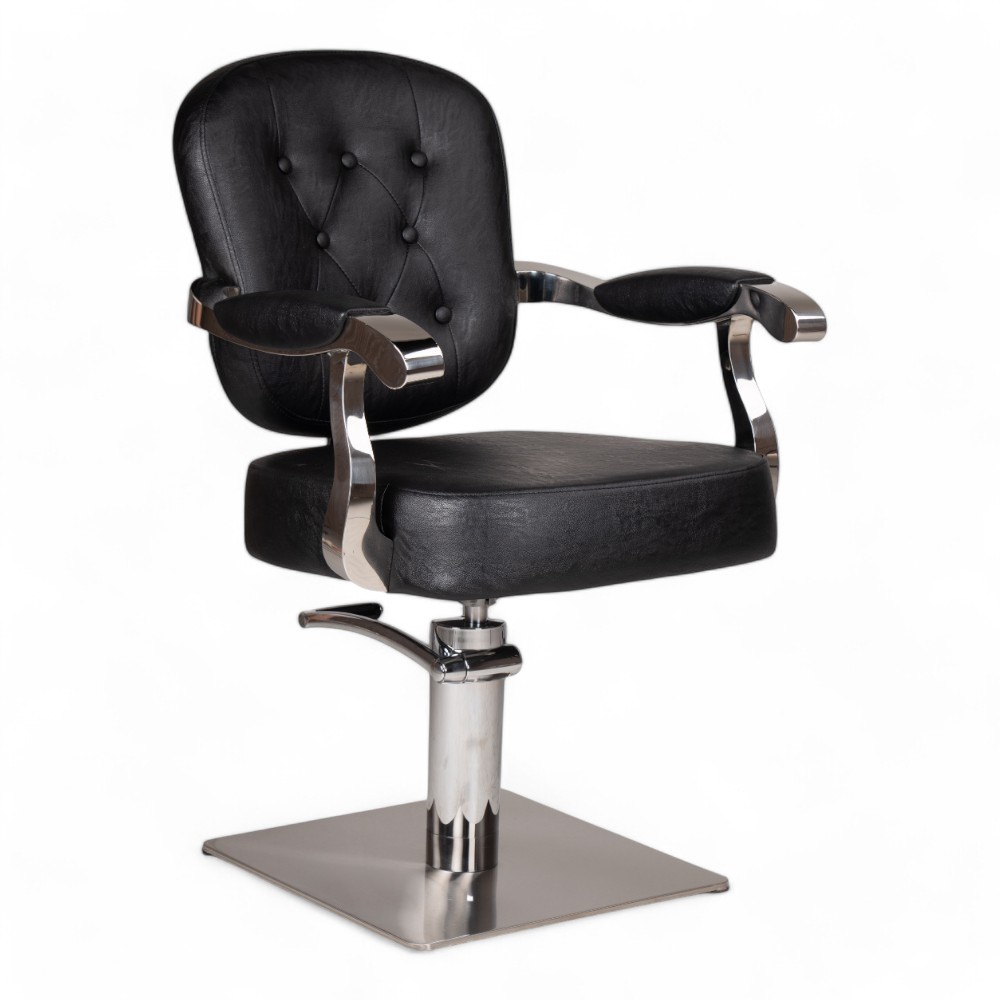 La poltrona parrucchiere MITUA.YL, rivestita in similpelle nera, è dotata di una pompa idraulica per regolare facilmente l'altezza. Il design elegante e confortevole garantisce un'esperienza ottimale sia per il cliente che per l'operatore. Ideale per saloni professionali che puntano su stile e funzionalità.