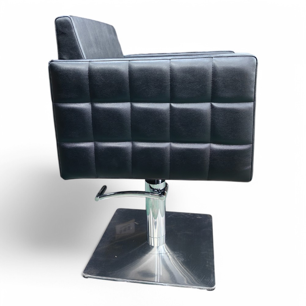 Progettata con linee pulite e contemporanee, la poltrona parrucchiere SQUARE.HG, rivestita in similpelle nera, offre comfort e regolazione idraulica per facilitare l'uso. La struttura robusta e il design elegante la rendono ideale per saloni moderni che puntano su qualità e stile.