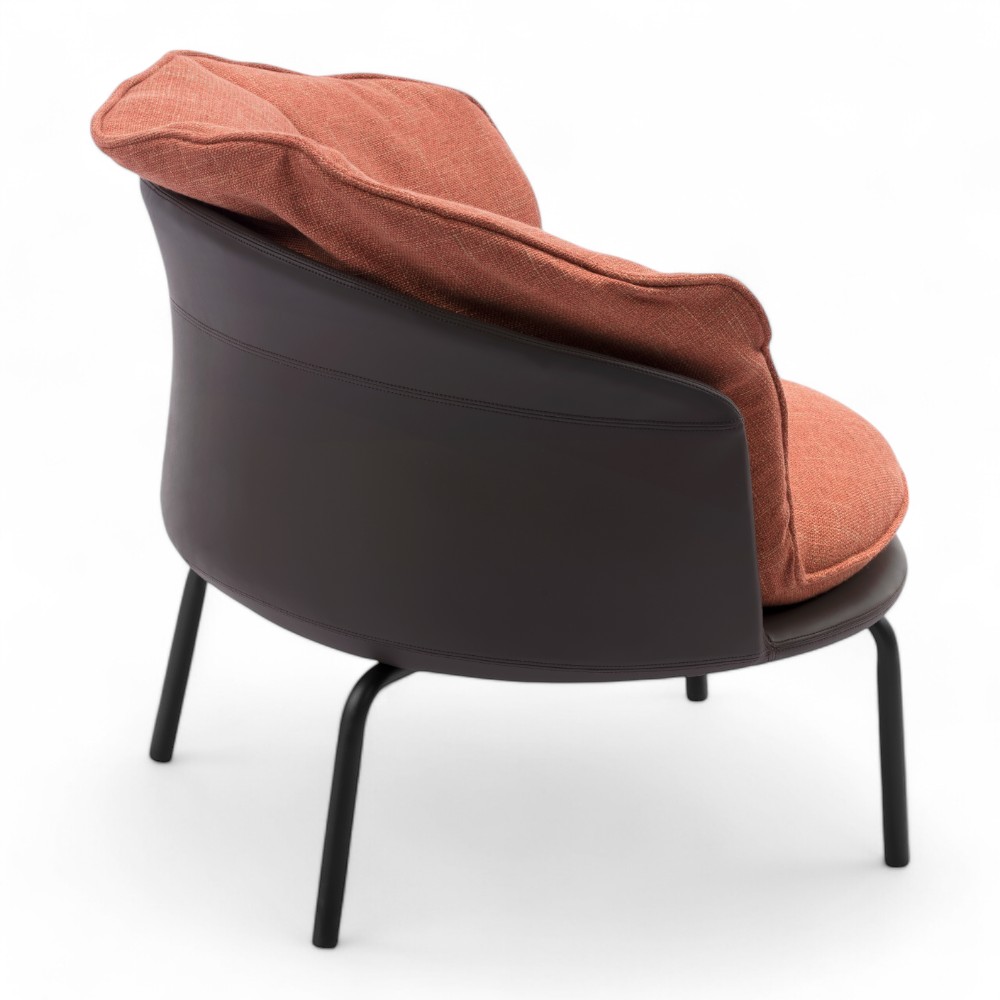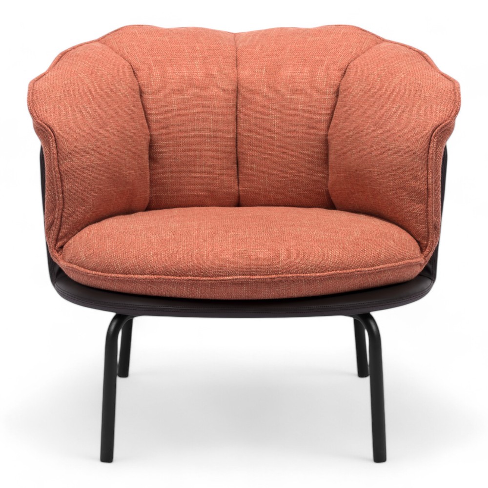 La poltrona NEXUS.RN, rivestita in tessuto arancione, è un complemento d'arredo audace e moderno. Il suo design elegante e confortevole è perfetto per sale d'attesa o spazi relax, aggiungendo un tocco di personalità e colore all'ambiente.