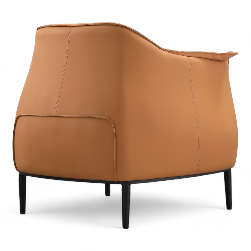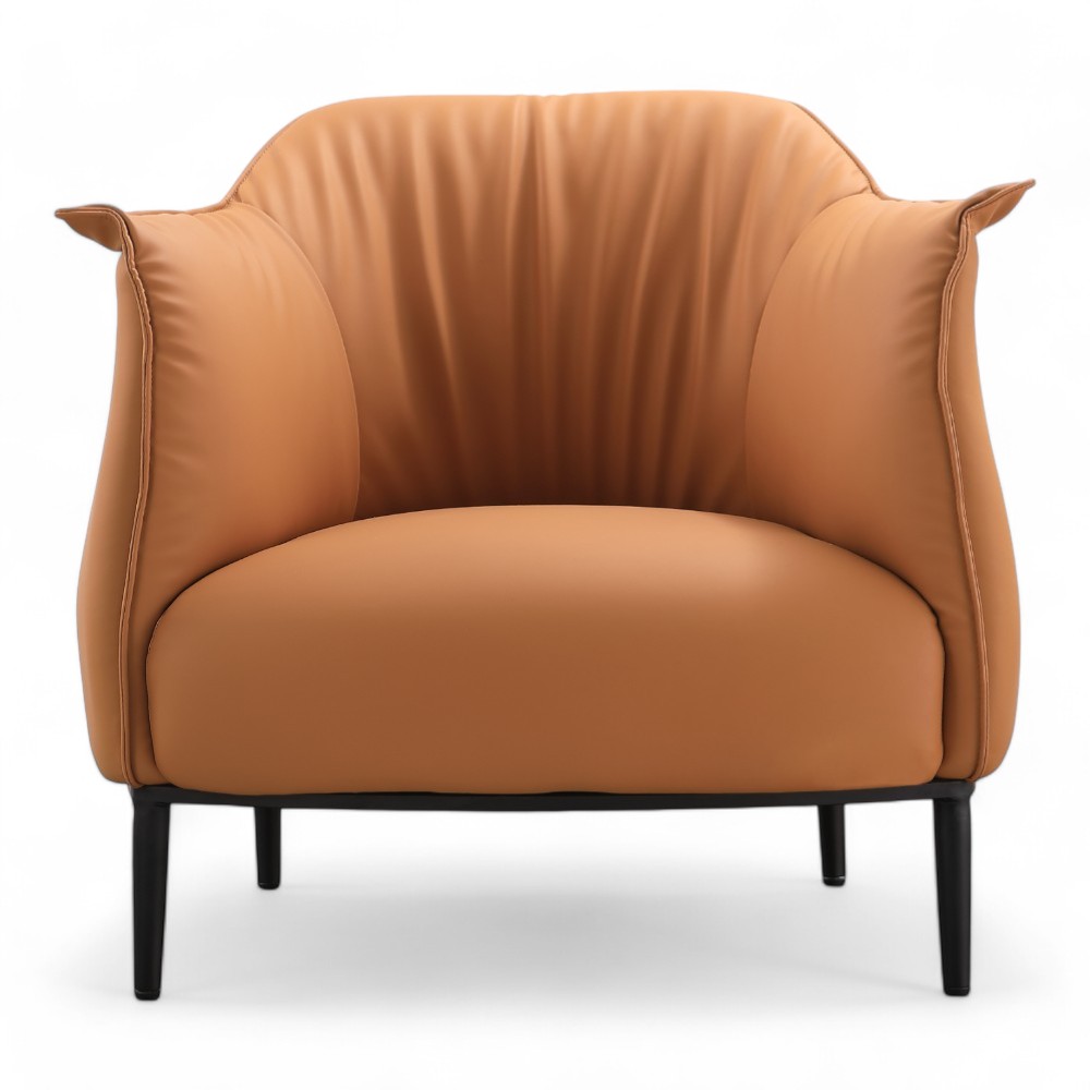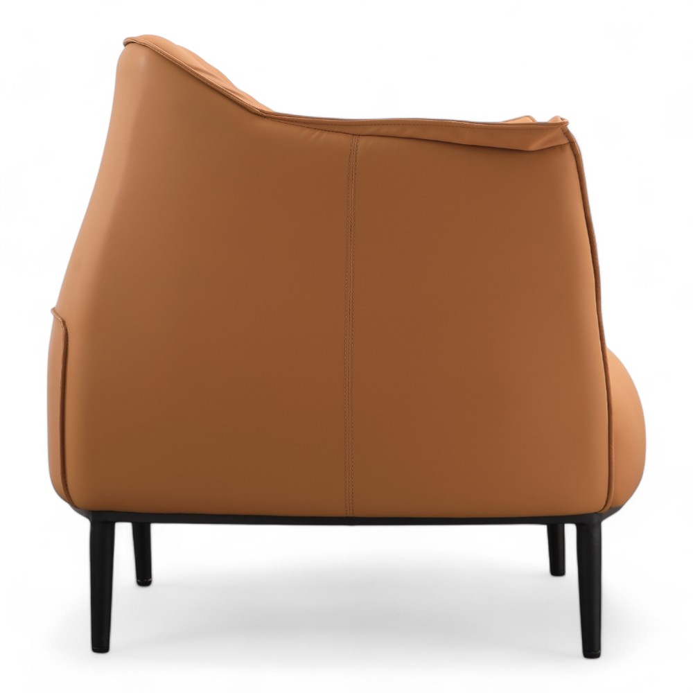 La poltrona SWAY.PR in similpelle marrone cammello offre una combinazione di eleganza e comfort. Con il suo design avvolgente, è ideale per spazi di attesa o relax, aggiungendo un tocco caldo e sofisticato all'ambiente.