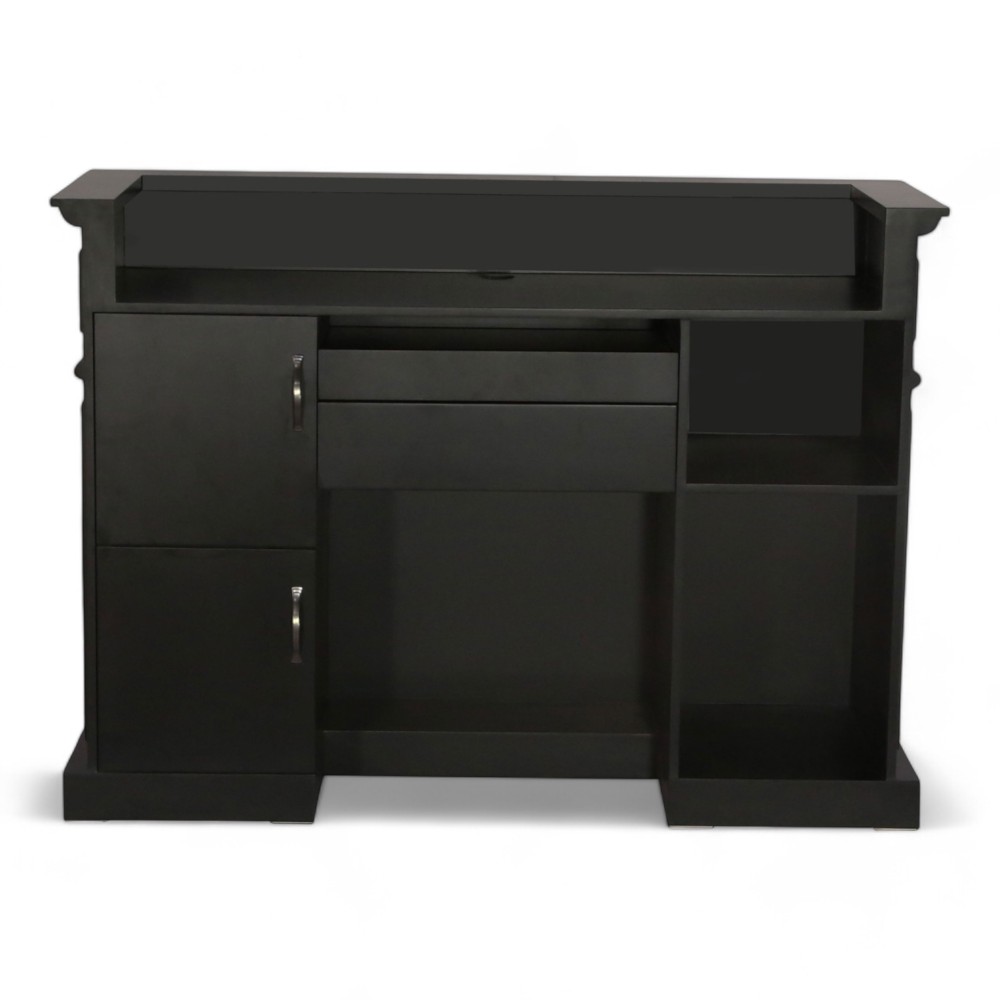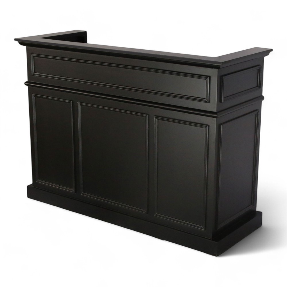La reception ANTIQ.FN in nero è un pezzo d’arredo elegante e funzionale per accogliere i clienti con stile. Realizzata con materiali di alta qualità, offre ampi spazi per l’organizzazione e un look sofisticato, ideale per saloni che desiderano trasmettere professionalità e raffinatezza.