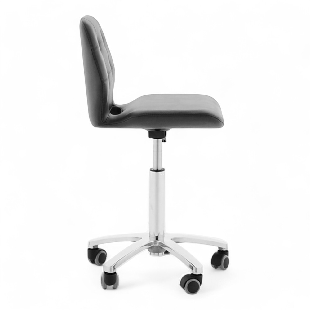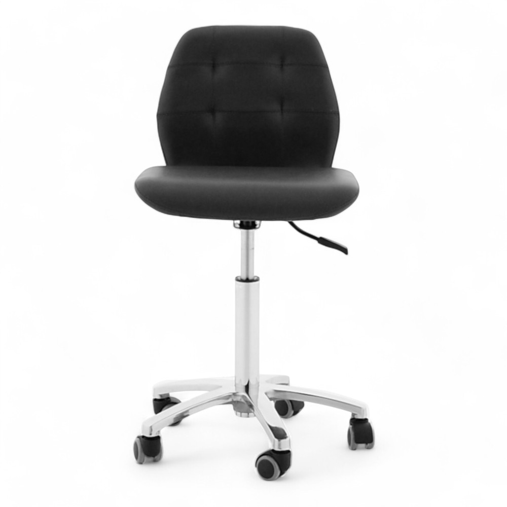 Lo sgabello BORN.HG in similpelle nera offre una seduta confortevole e un supporto regolabile grazie alla pompa idraulica. Perfetto per saloni di parrucchieri o centri estetici, unisce praticità ed eleganza in un design compatto e moderno.