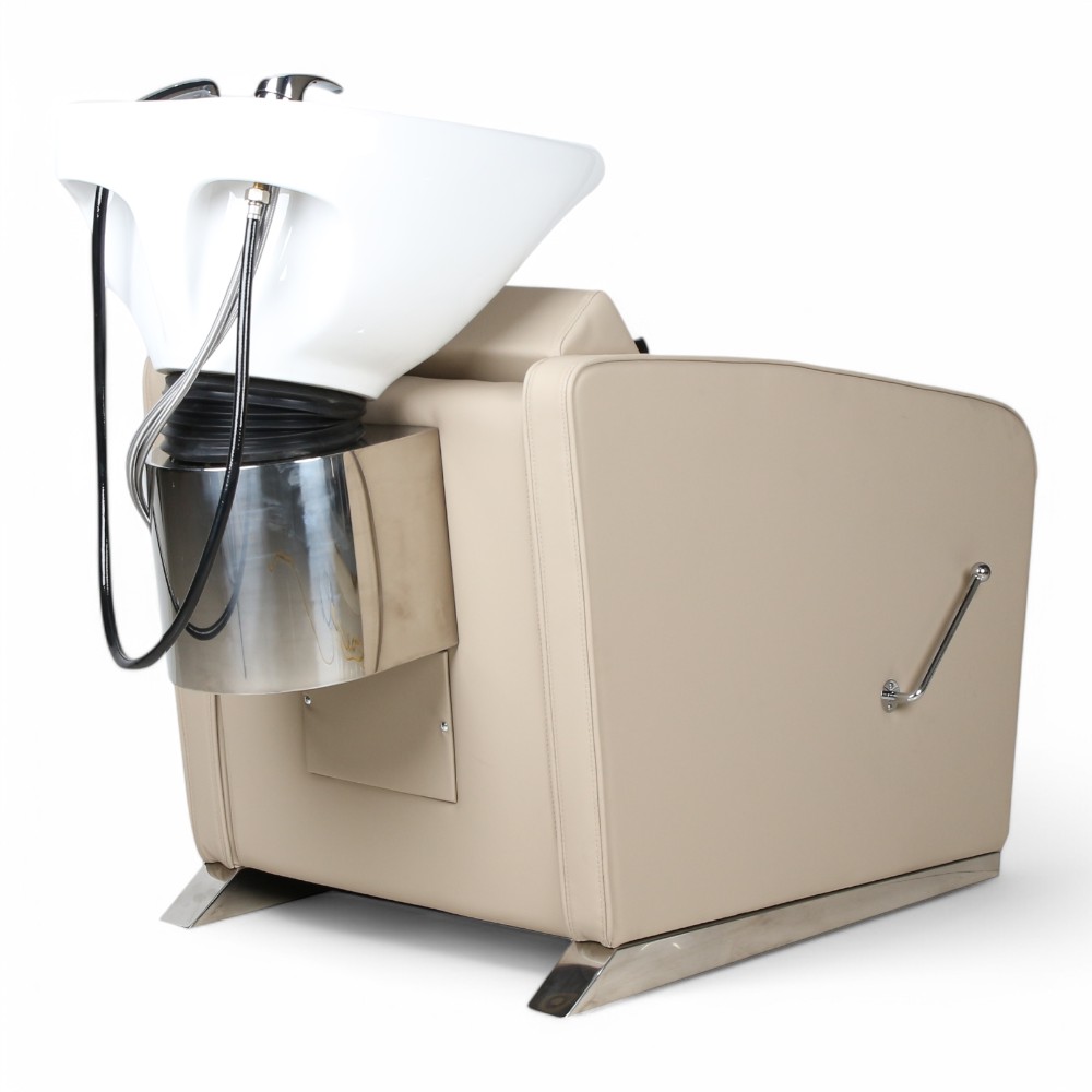 Il lavatesta NEO.FN, rivestito in similpelle beige, è progettato per garantire il massimo comfort e praticità. Dotato di un sistema alza gambe manuale regolabile, permette ai clienti di distendersi comodamente durante il lavaggio, offrendo un’esperienza rilassante e piacevole. La seduta ergonomica e imbottita, unita al suo design elegante e moderno, lo rende la scelta perfetta per saloni che desiderano coniugare stile, funzionalità e benessere.