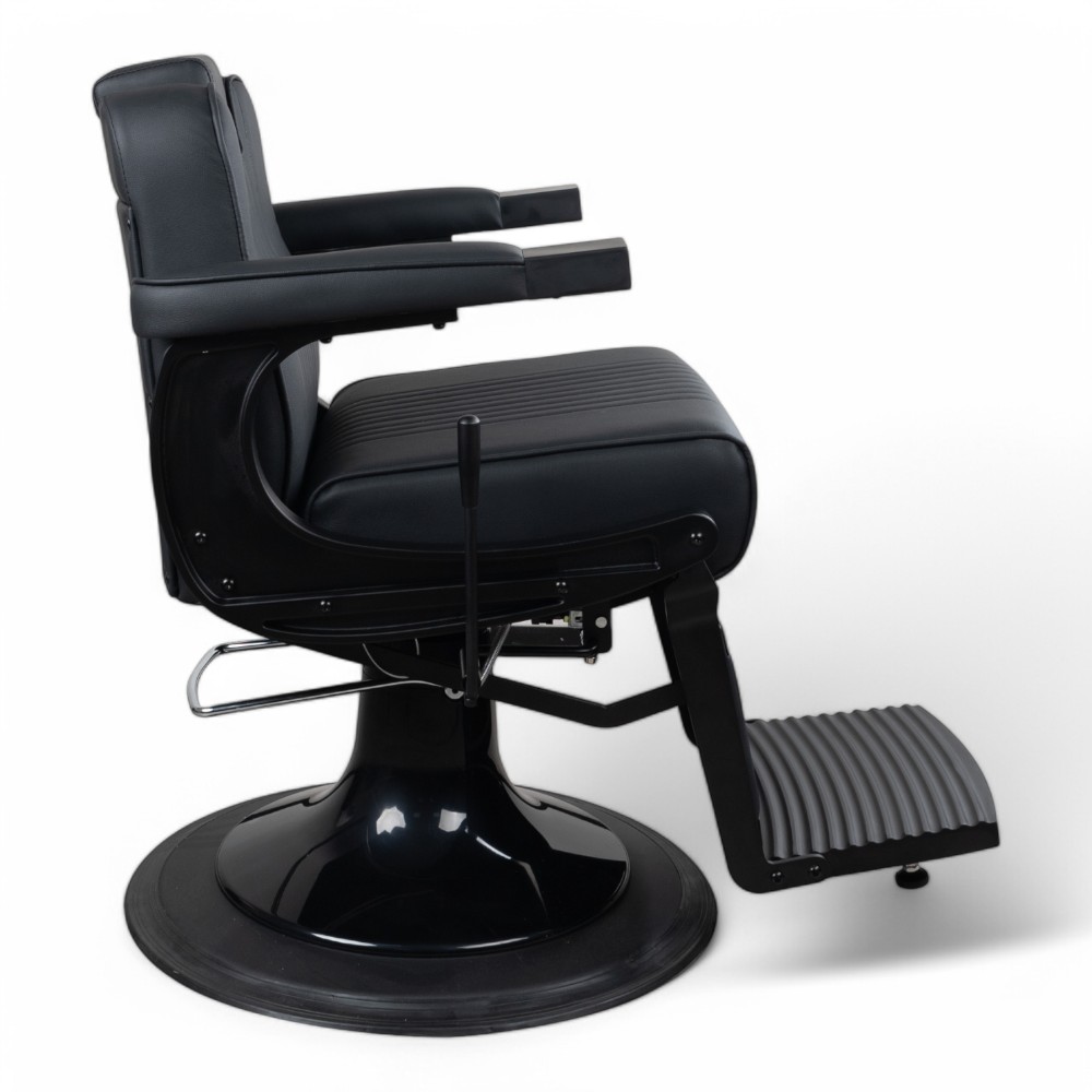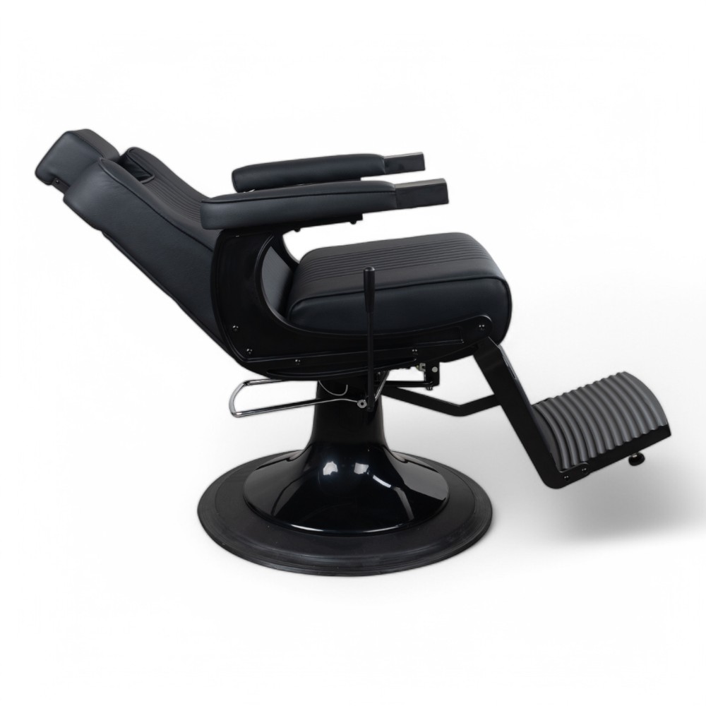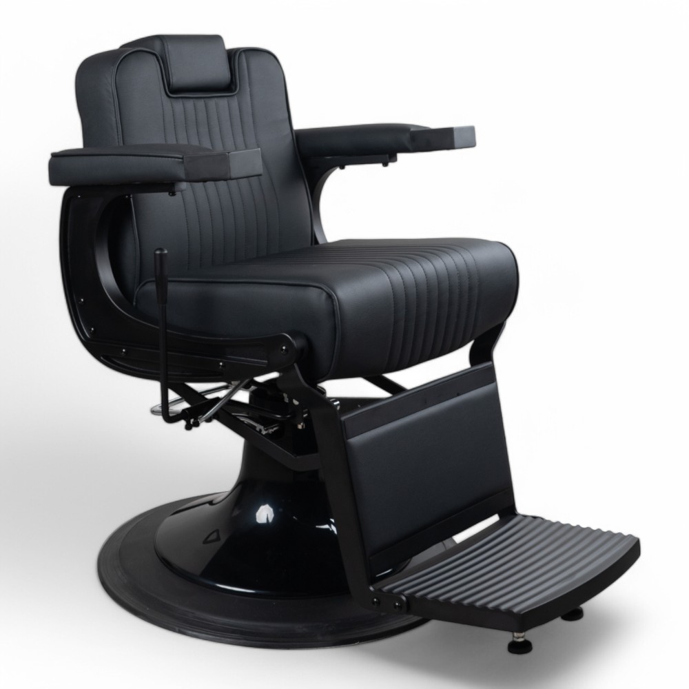 La poltrona da barbiere NEWMA.HL combina eleganza e funzionalità con la sua scocca nera e rivestimento in similpelle nera. Il design ergonomico assicura massimo comfort ai clienti, mentre la struttura robusta garantisce durabilità nel tempo. Ideale per saloni che desiderano un look moderno e professionale.