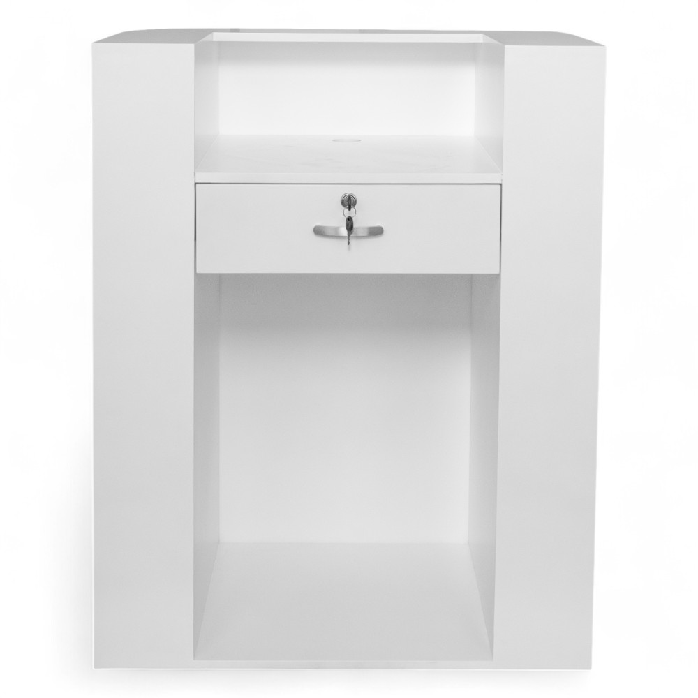 The DOGAM.FN reception desk, with its minimalist White finish, is an ideal choice for modern living rooms. The simple, straightforward design makes it perfect for those seeking a bright, contemporary look, adding a touch of elegance to the environment.