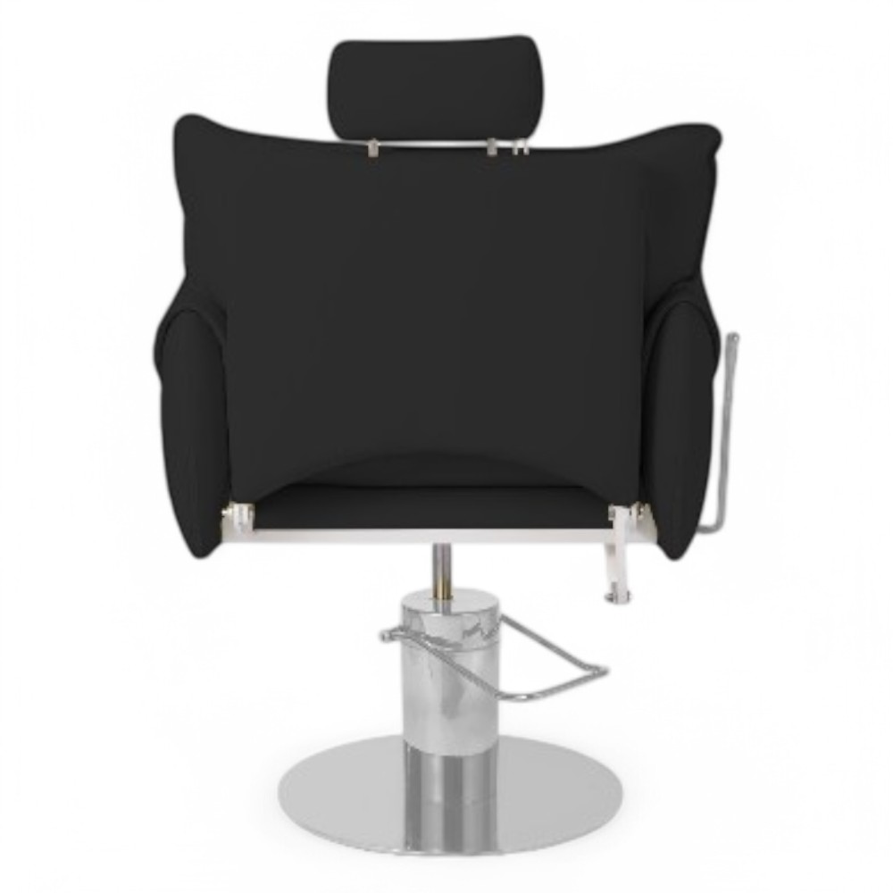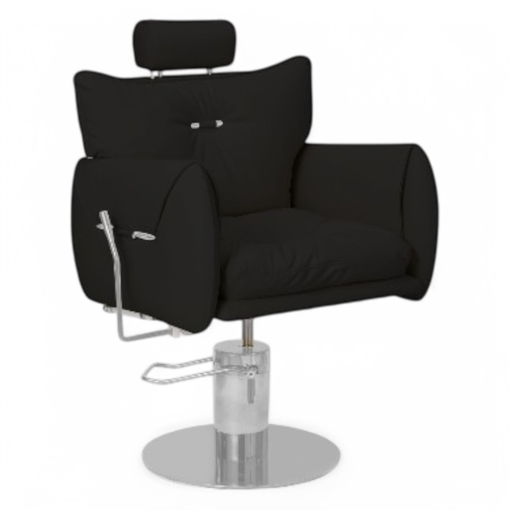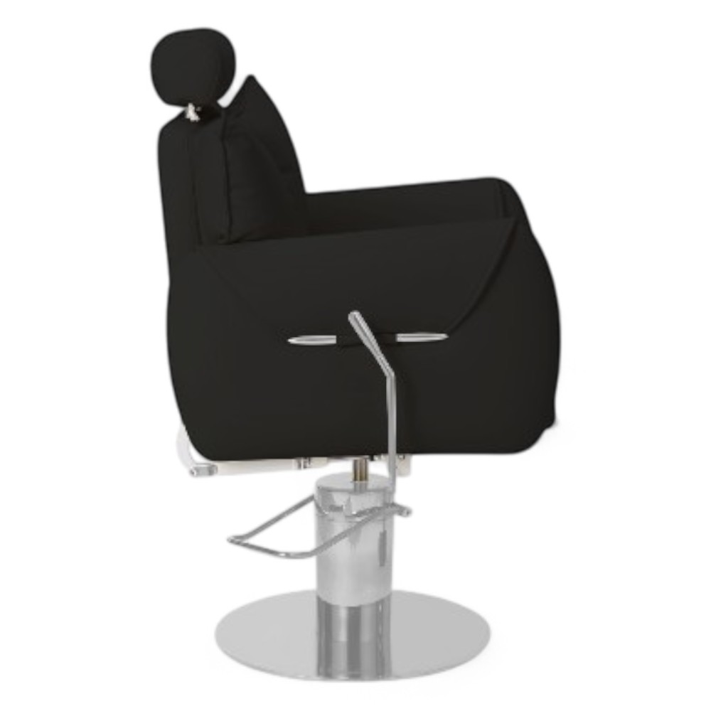 La poltrona trucco VANIT.YC, rivestita in similpelle nera, è pensata per offrire eleganza e comfort durante le sessioni di trucco o trattamenti estetici. Il design ergonomico garantisce una seduta confortevole per il cliente, mentre la finitura in similpelle dona un tocco raffinato e facile da pulire. Ideale per saloni di bellezza che vogliono combinare funzionalità e stile.