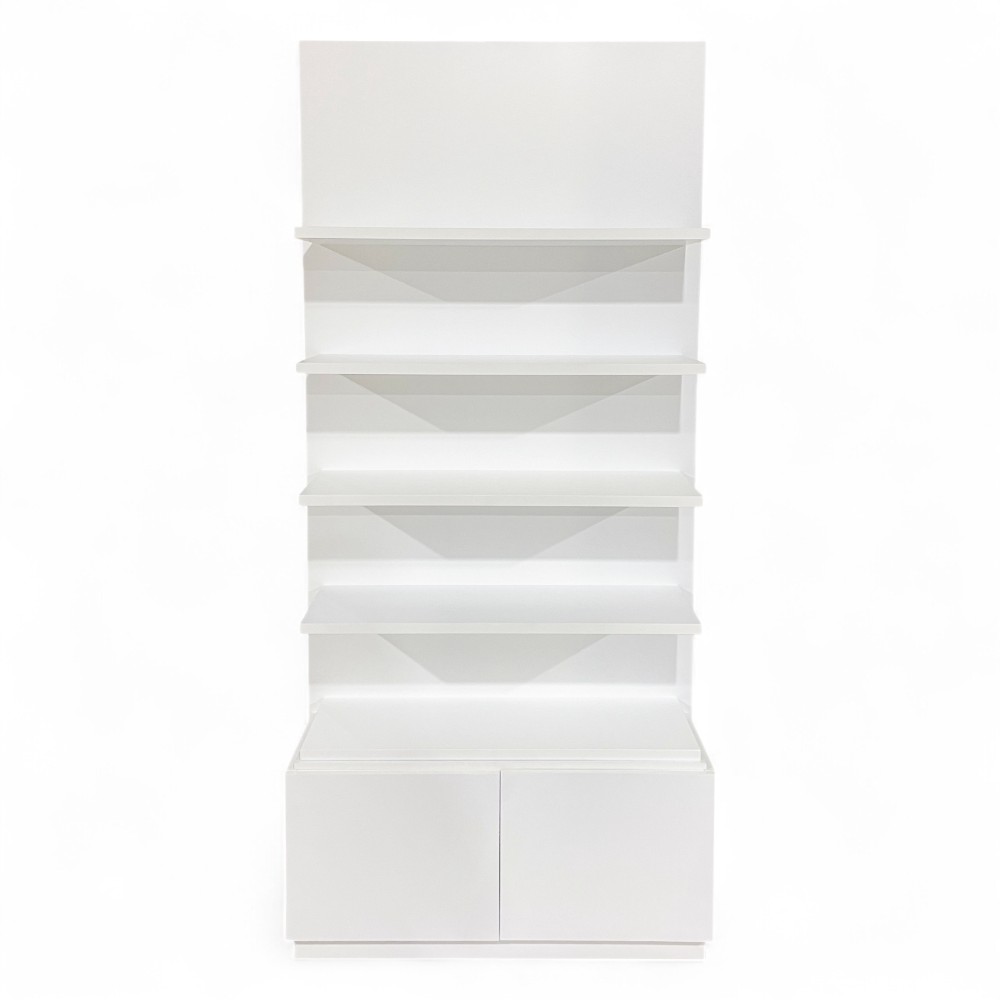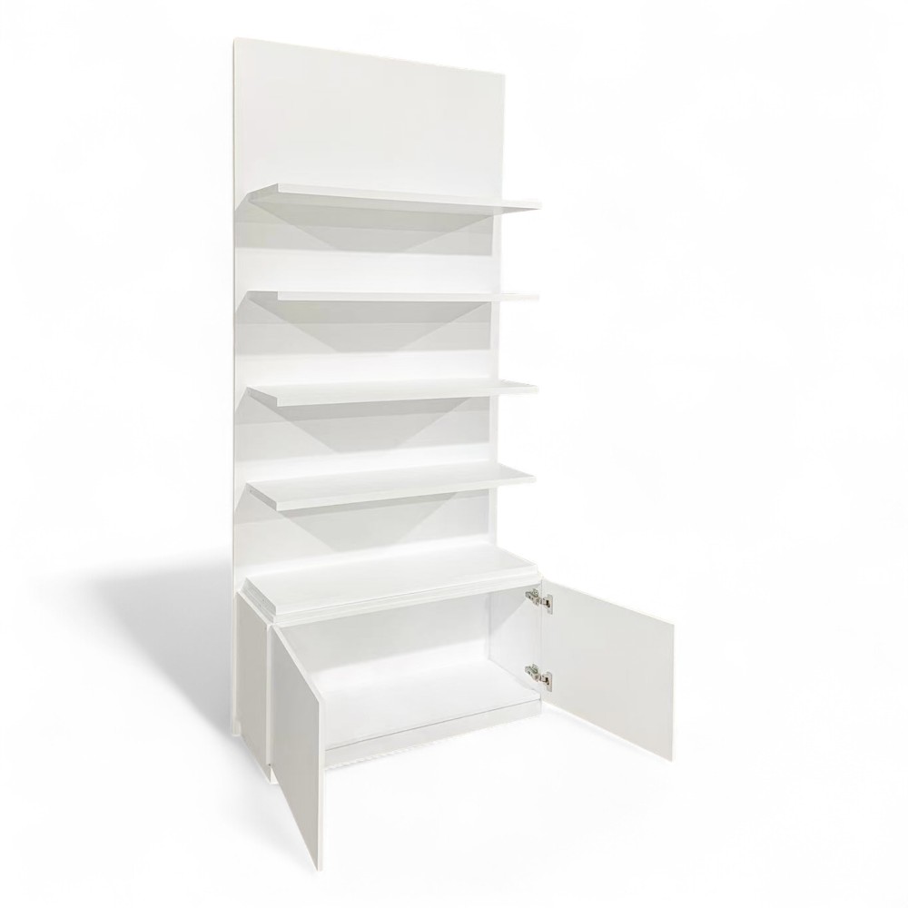 L'espositore MENSI.FN, con la sua finitura bianca, è pensato per valorizzare i prodotti e aggiungere un tocco di eleganza all'ambiente. I ripiani spaziosi permettono di esporre vari articoli in modo ordinato, garantendo visibilità ottimale. La sua struttura solida lo rende perfetto per saloni e boutique che desiderano presentare i propri prodotti con stile.