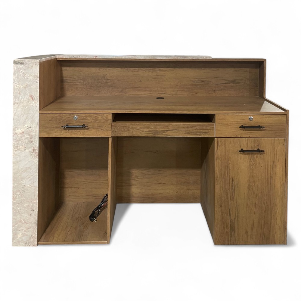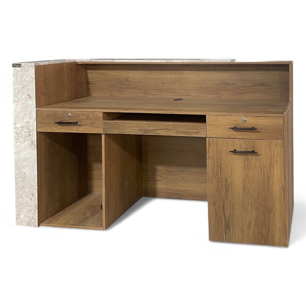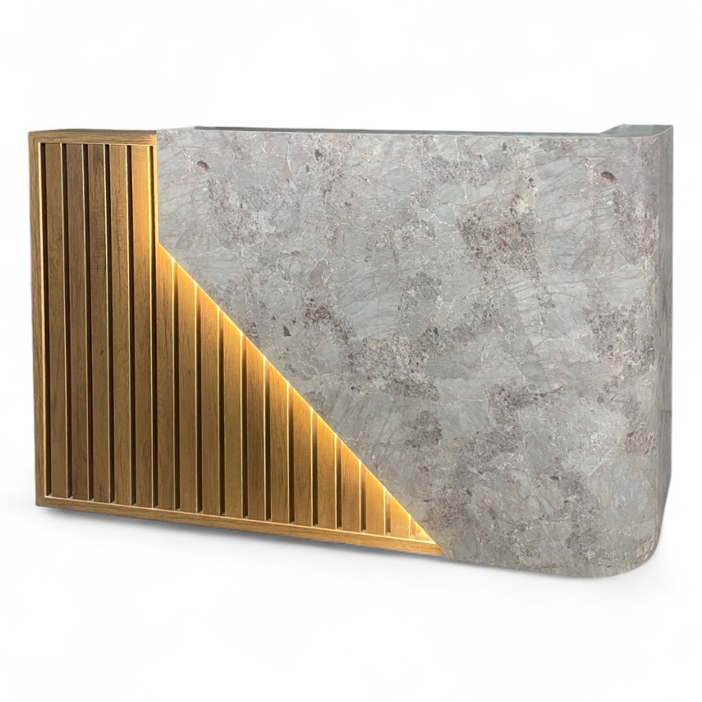 La reception BISIDE.FN unisce marmo e legno in un design contemporaneo e raffinato, impreziosito da un'illuminazione LED integrata. Perfetta per saloni che desiderano distinguersi, questa reception rappresenta un equilibrio ideale tra eleganza e praticità, creando un’atmosfera accogliente e di classe.