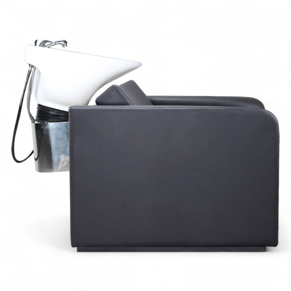 Con il modello TYPE.FN, funzionalità ed essenzialità si incontrano per offrire un'esperienza di lavaggio pratica e confortevole. Il rivestimento in similpelle nera garantisce resistenza all'usura quotidiana e una pulizia rapida, mentre l’imbottitura del sedile e lo schienale sagomato assicurano un buon livello di comfort. Il bacino in ceramica, fisso ma ben posizionato, consente all’operatore di lavorare con efficienza, rendendo TYPE.FN una soluzione ideale per saloni che cercano affidabilità e semplicità senza rinunciare all’estetica.