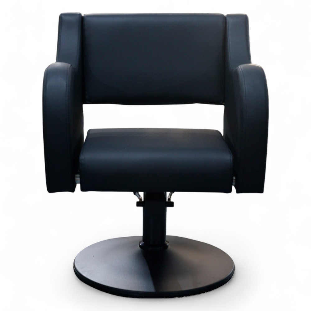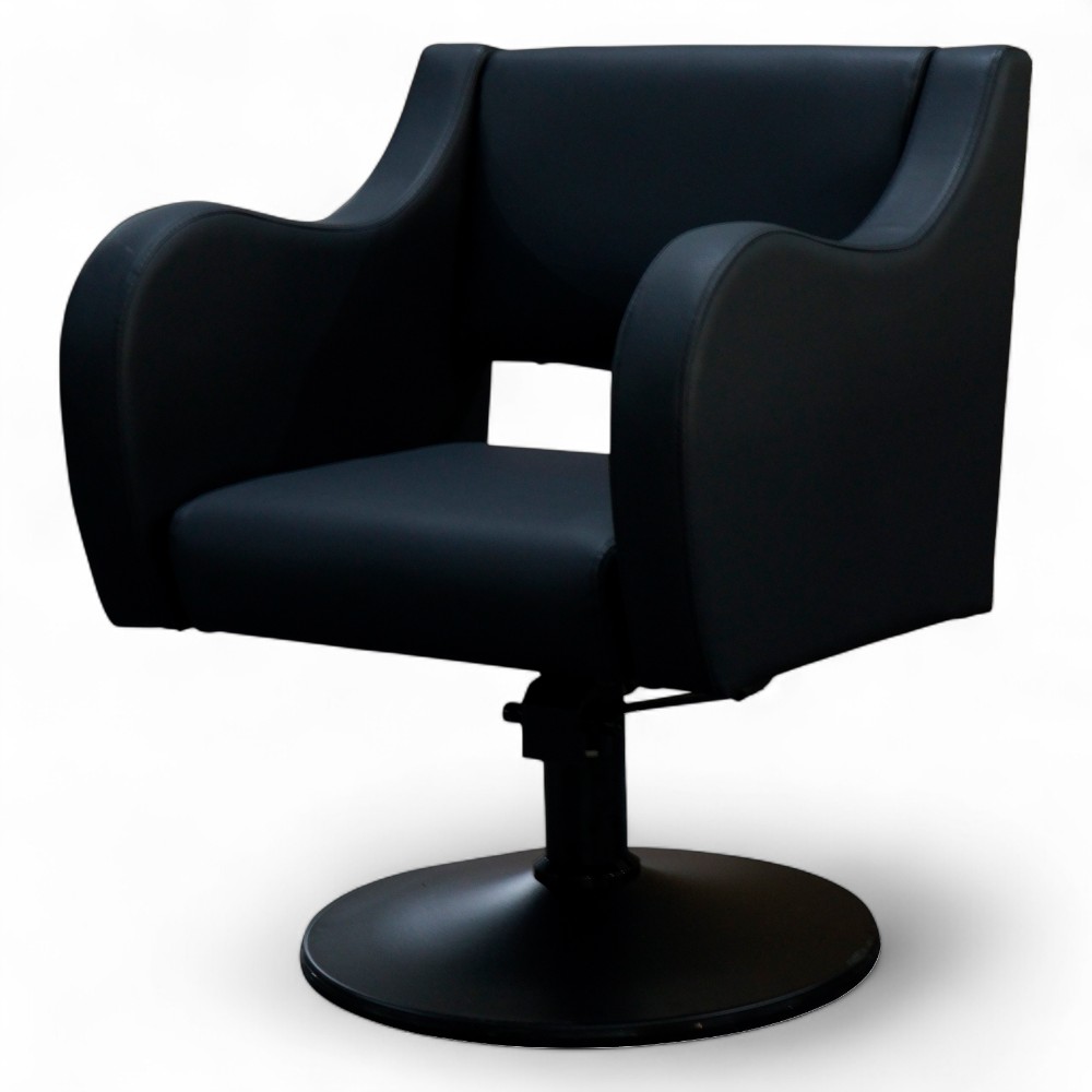 La poltrona RYME.MG si distingue per la sua forma accogliente e arrotondata, rivestita in similpelle nera. Dotata di pompa idraulica, è progettata per garantire comfort al cliente e facilità di regolazione per l’operatore. Una scelta versatile che si adatta a ogni tipo di arredo professionale.